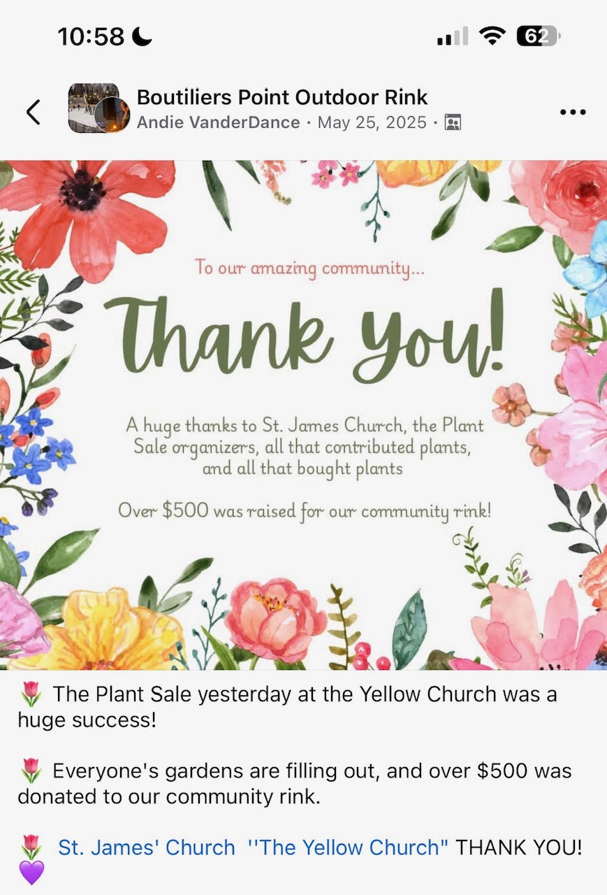 In support of our community, we collect food for emergency needs at the St. James’ Pantry, we support the Boutilier’s Point Rink and local business. We provide picnic benches, a garden, signage, bike racks and parking for access to the St. Margaret’s Bay Area Rails to Trails. Our upgraded church hall and property provides a venue for concerts, art classes, discussion groups and fellowship, games, sewing classes, music therapy, Reiki, receptions and luncheons.