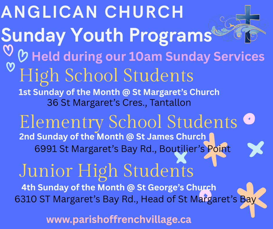 Do you want to make a difference? The work of our Parish Council is important to sustain the ministries of our churches and to meet the day to day commitments. You can take an active role in developing a strategy for our ongoing ministries and future growth. Please chat/e-mail with Rev Brieanna if you would like to be a part of the team working together for God’s mission. Rev Brieanna: p.frenchvillage@ns.sympatico.ca;