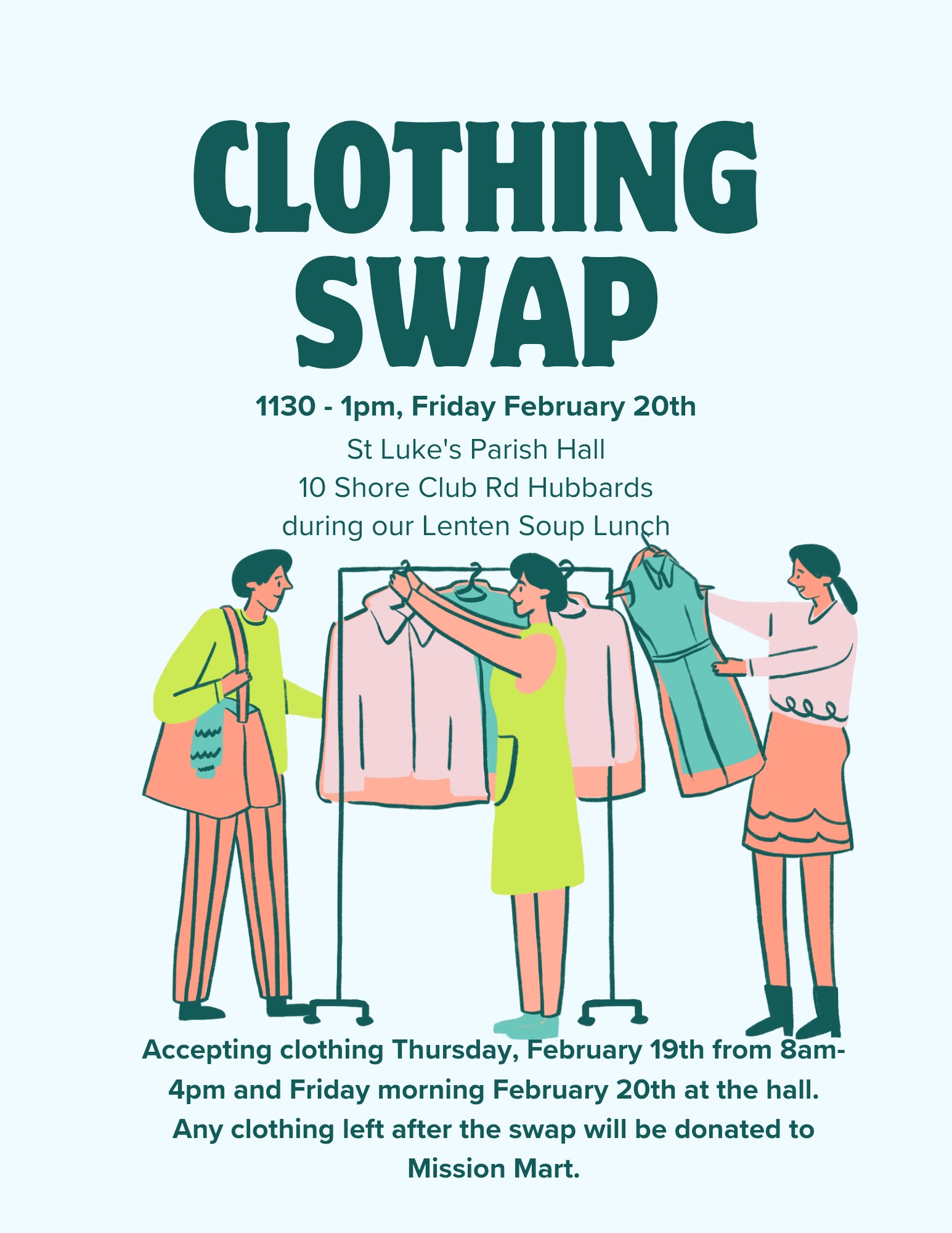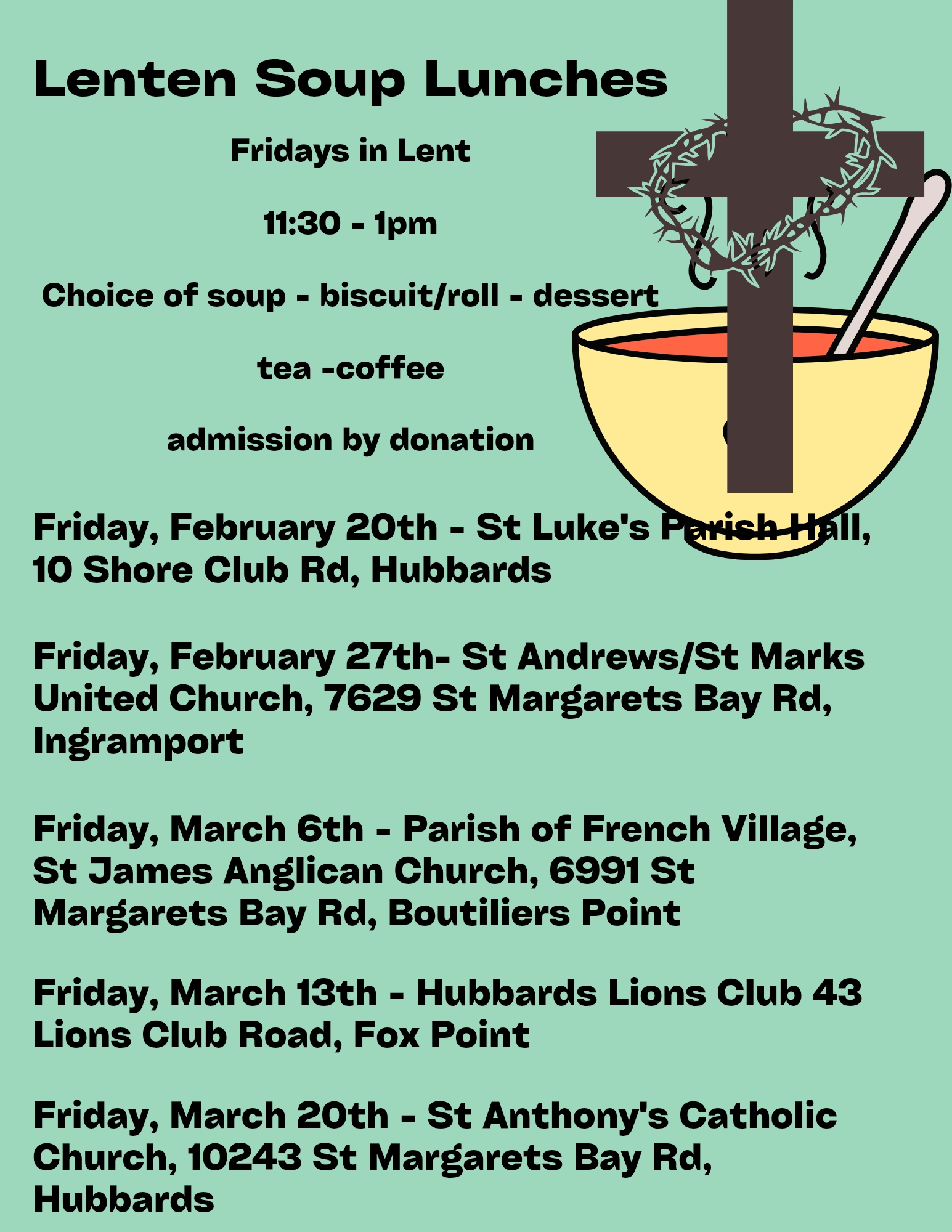 Anyone wishing to be a reader and/or greeter is asked to contact Janet at champnissjanet1@gmail.com or 902-826-2251